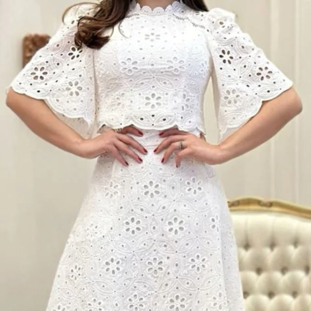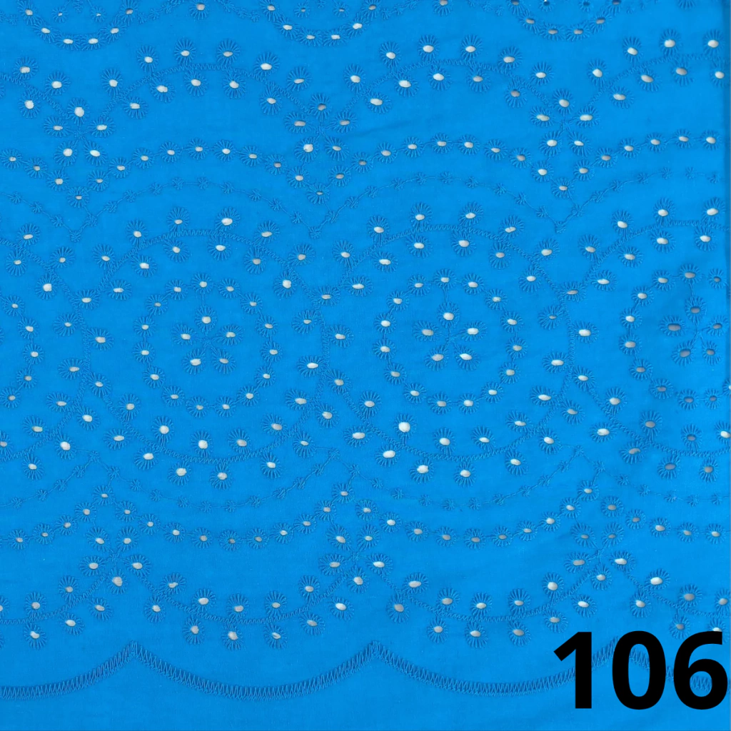 Esse tecido romântico com bordados delicados é perfeito para o Verão! Feito com a fibra natural de algodão que é bem refrescante, tem diferentes tipos de bordados elaborados, como florais, poás e zigzags em várias opções de cores, de pastéis a cores vibrantes. Alguns dos bordados tem pontos vazados que tornam esse tecido ainda mais fresco. E além de todas essas vantagens, é muito versátil, podendo ser usado tanto na moda quanto para decoração e artesanato. Vestidos curtos e midi, camisas, blusas, calças, saias, roupas justas ou soltinhas, esse tecido é ótimo para qualquer tipo de roupa que quiser costurar. Você vai se apaixonar pelo conforto e delicadeza desse tecido, não espere para escolher o seu!
