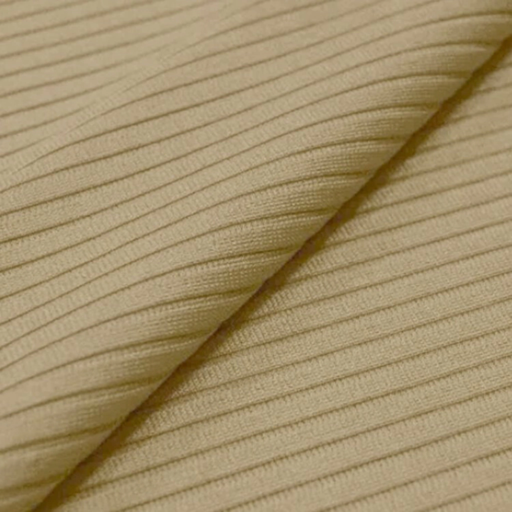 A malha canelada une o conforto da malha com o charme do canelado! Esse tecido é uma malha com alta elasticidade, característico pelo canelado, que são as listras em alto relevo. Possui um brilho acetinado e ótimo caimento. A malha canelada é indicada para roupas mais justas, como vestidos, saias e blusas.