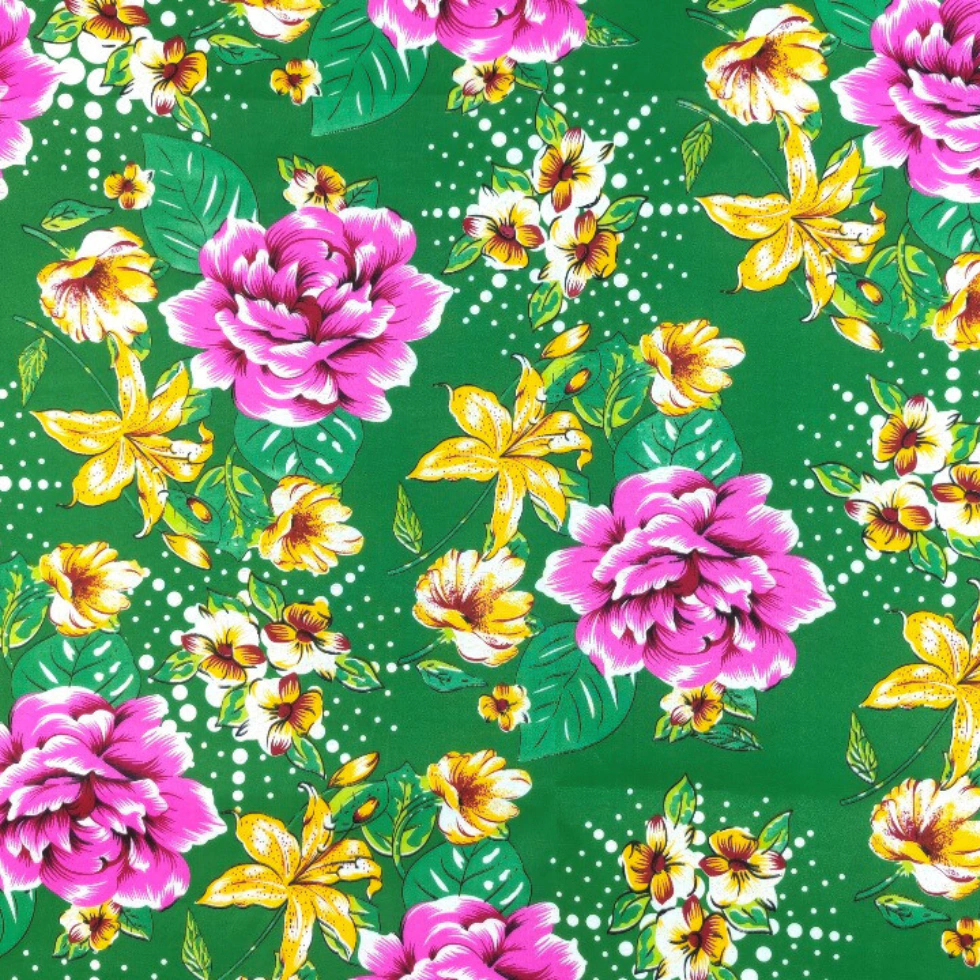 O tecido pop estampado chita de poliéster é uma versão sintética e mais resistente do tradicional chita, com estampas vibrantes e coloridas. Leve e fácil de cuidar, é ideal para roupas casuais, decoração e acessórios. Sua durabilidade e menor amassado fazem dele uma opção prática e estilosa para o dia a dia.